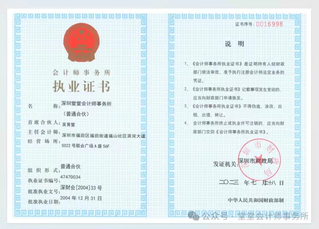 深圳堂堂國(guó)際會計師事務所是由中國(guó)注冊會計師、中國(guó)注冊資産評估師、中國(guó)注冊稅務師等于2004年(nián)12月創建成立逾20年(nián)的專業化、制度化、國(guó)際化的專業服務機(jī)構,依法獨立承辦審計、驗資、資産評估、會計服務、稅務服務、績效評價、内部控制服務等注冊會計師業務,業務涉及股票發行與上市、上市公司審計、發債業務審計、公司改制、企業重組、資本運作(zuò)、财務咨詢、管理(lǐ)咨詢、稅務咨詢等領域,持有深圳市财政局《會計師事務所執業證書(shū)》、深圳市市場監督管理(lǐ)局《營業執照(zhào)》,具備中國(guó)銀行間市場交易商協會會員(yuán)資格,是财政部、證監會從(cóng)事證券服務業務首批備案會計師事務所。