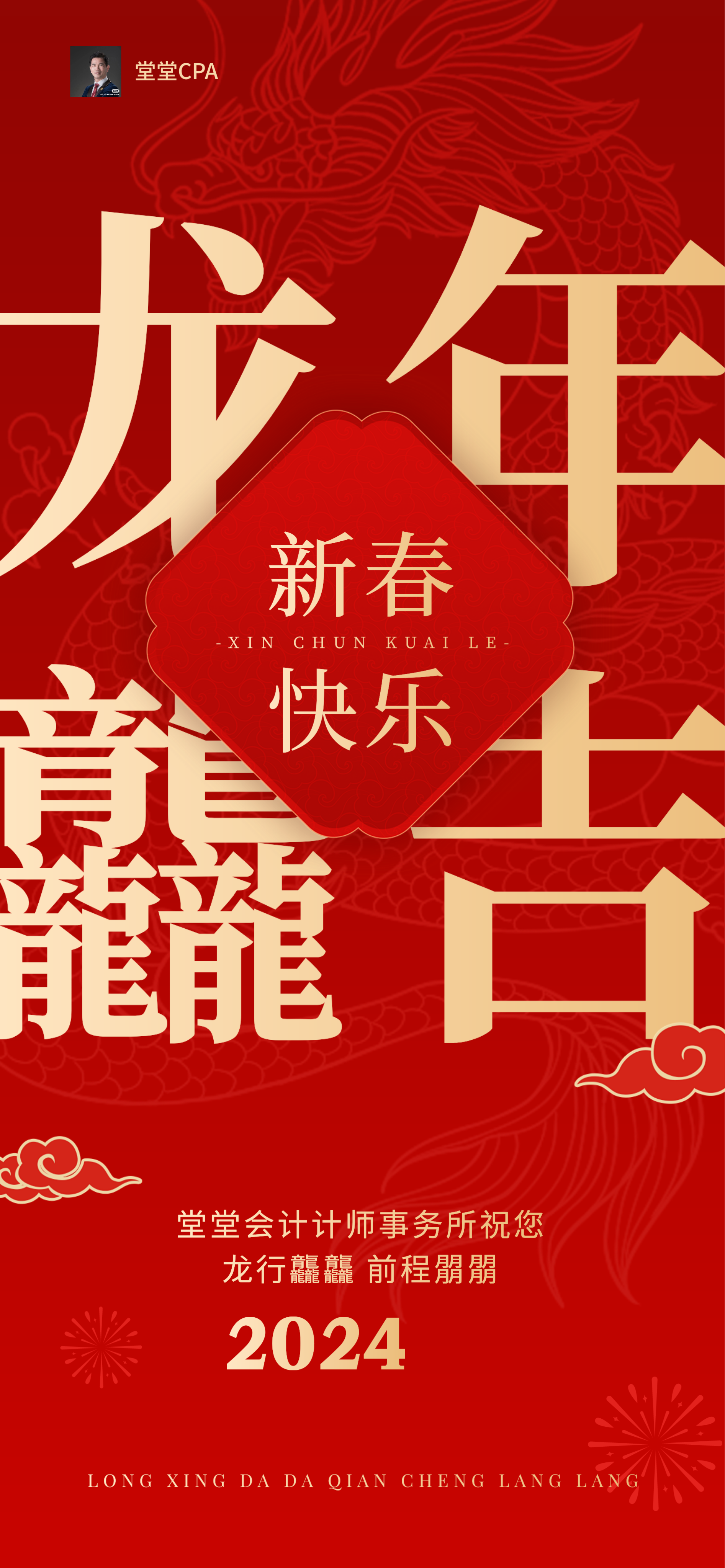 2024年(nián)甲辰龍年(nián),龍騰虎躍,魚躍龍門(mén),堂堂會計師事務所歡迎大(dà)家委托上市公司、新三闆公司、基金公司、大(dà)中小型企業審計、驗資、資産評估、稅務鑒證、工(gōng)程造價咨詢、财稅咨詢、工(gōng)商注冊地址托管等服務業務,堂堂竭誠爲您提供優質高效的專業服務。